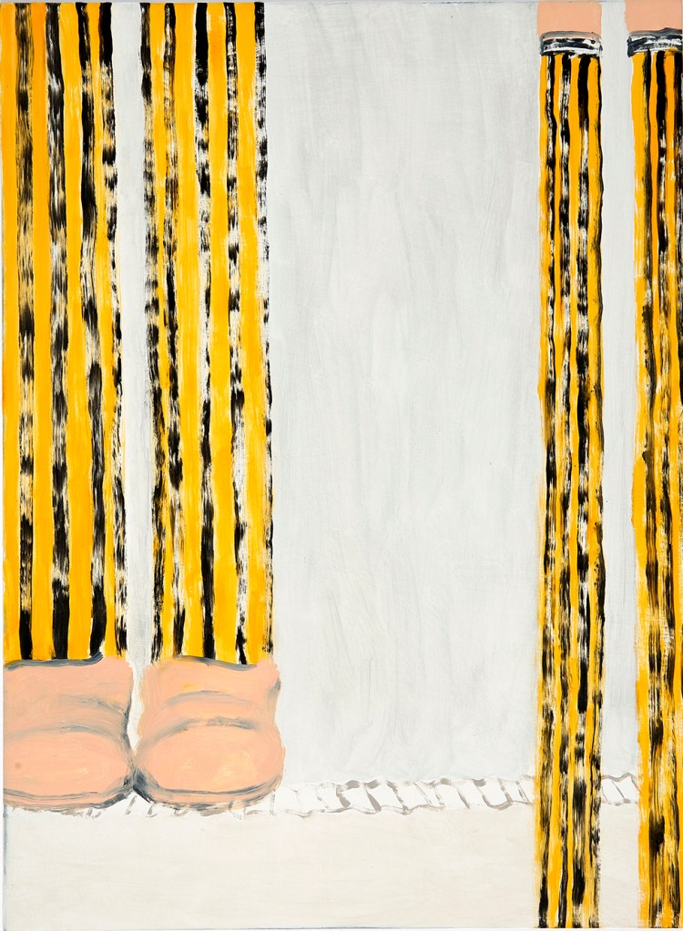 Studio shot of Yellow with Green Stripes (30 x 50cm) and Disassemble, 2015.