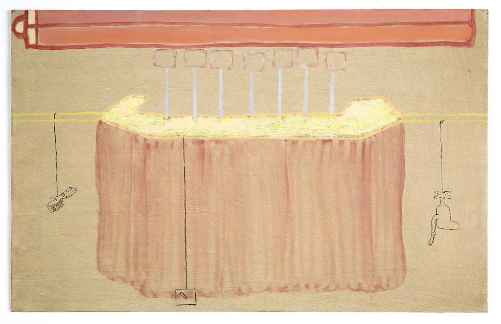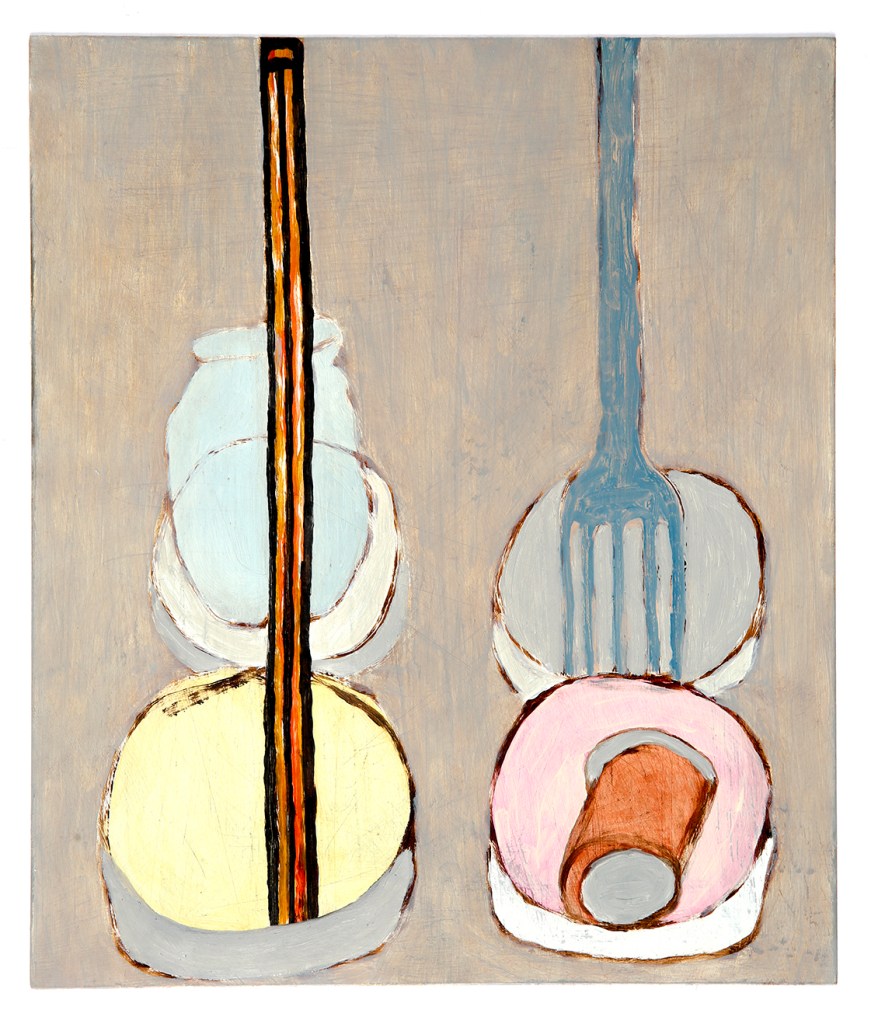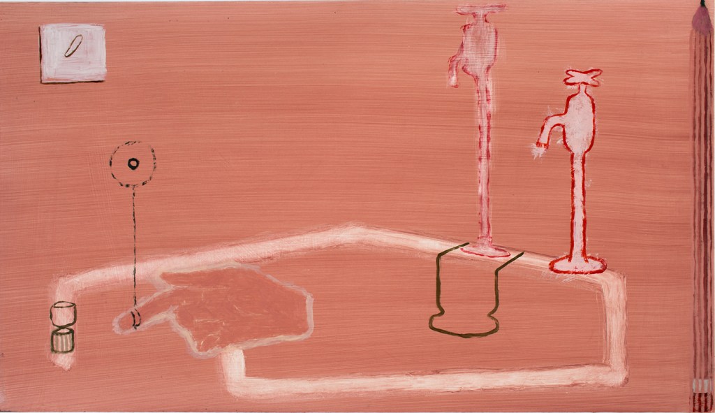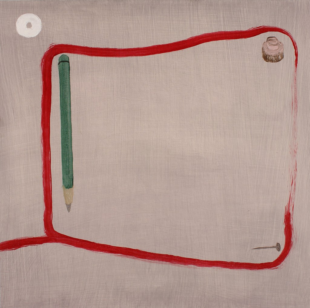 Objects with Pink Loop, 2014, 40 x 40 x 0.1cm, oil on steel. Private Collection.